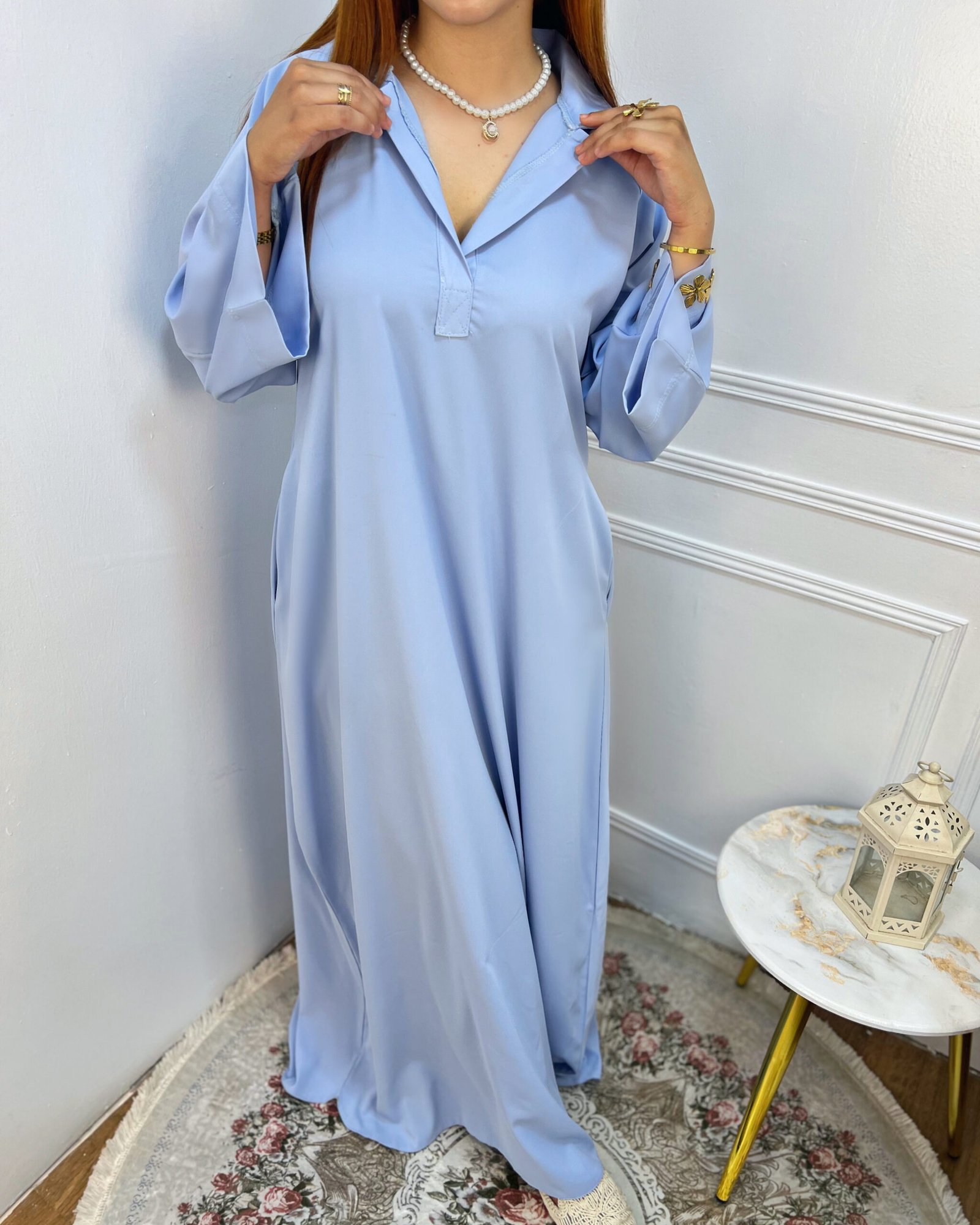 Optez pour cette robe longue évasée, au col chemise structuré et au tombé fluide qui allie élégance et confort. Sa coupe flatteuse met en valeur la silhouette sans trop en faire, tandis que son tissu léger la rend idéale pour les journées chaudes.