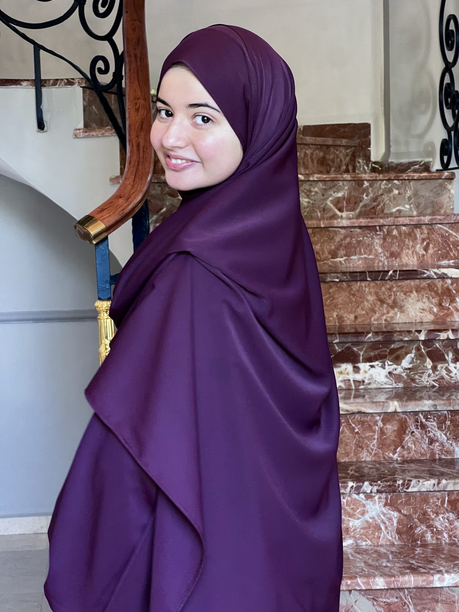 • وحدة التصميم واللون: نضمن لكِ تطابقاً تاماً في الألوان والخامة بين الحجاب والخمار، مما يخلق إطلالة انسيابية وتمنح مظهراً راقياً لا يتحقق بالقطع المتفرقة.